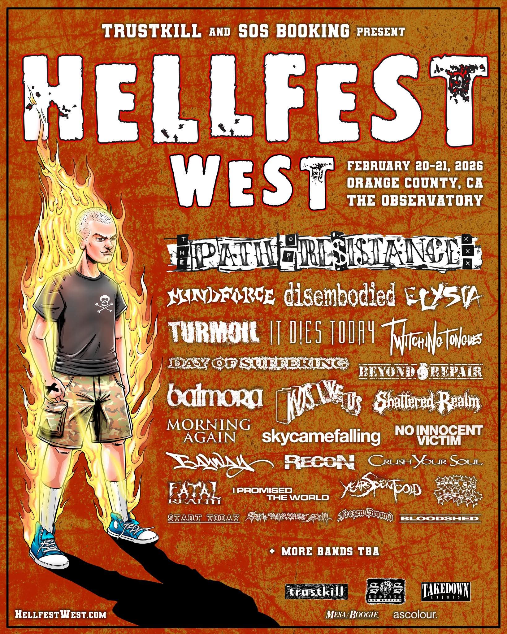 The initial lineup has been revealed for next year’s Hellfest West. The event will take place at The Observatory in Santa Ana, California on February 20-21 and it will feature the following: The Path Of Resistance, Mindforce, Disembodied, Elysia, Turmoil, Twitching Tongues, It Dies Today, Day Of Suffering, Beyond Repair, Balmora, Kids Like Us, Shattered Realm, Morning Again, Skycamefalling, No Innocent Victim, Bayway, Recon, Crush Your Soul, Fatal Realm, I Promised The World, Years Spent Cold, Outta Pocket, Frozen Ground, Start Today, Sin Against Sin, and Bloodshed.