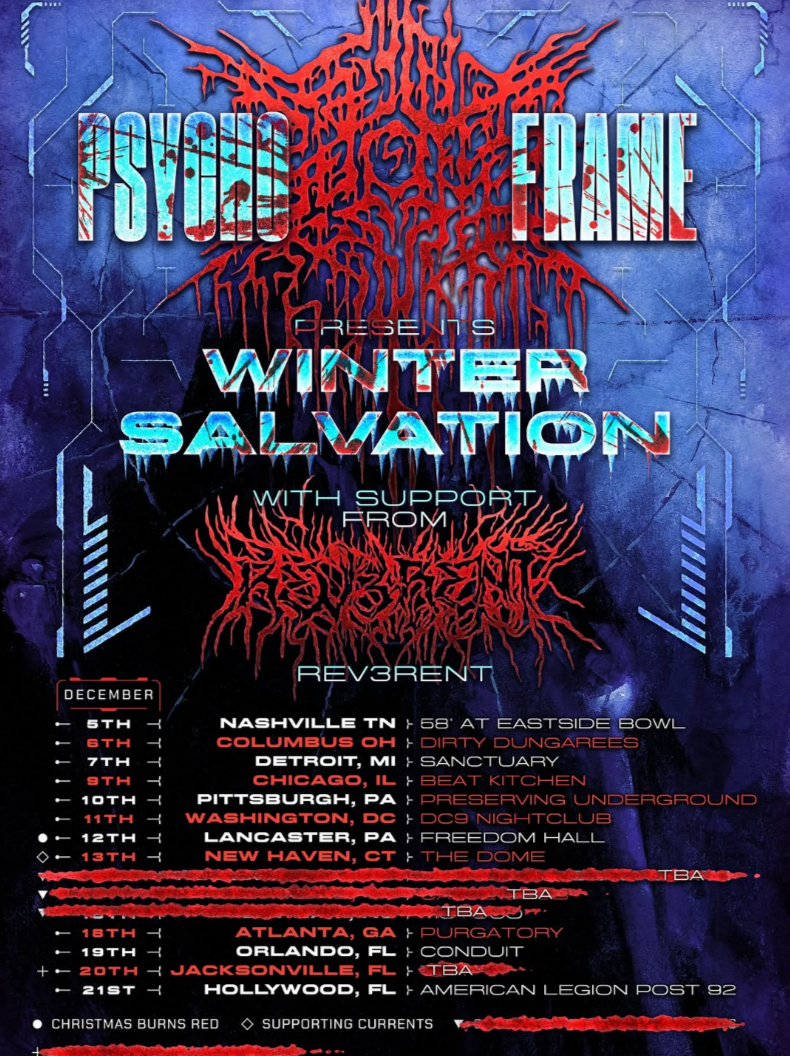PSYCHO-FRAME have announced a December U.S. tour with Rev3rent. Here’s the dates: