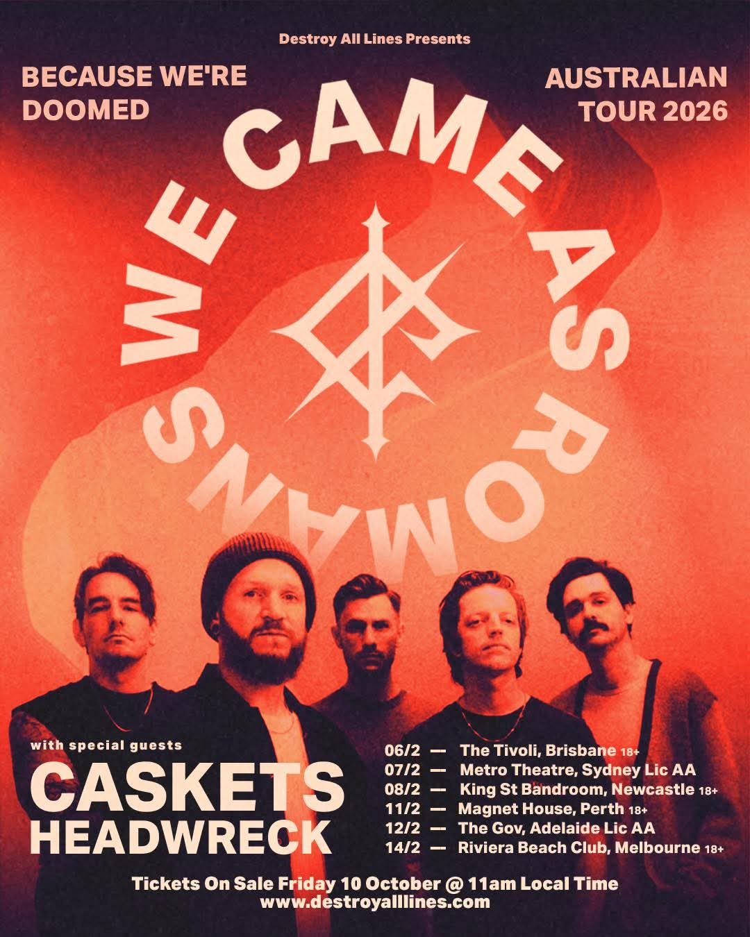 We Came As Romans have announced an Australian tour with Caskets and Headwreck. Here’s the dates: