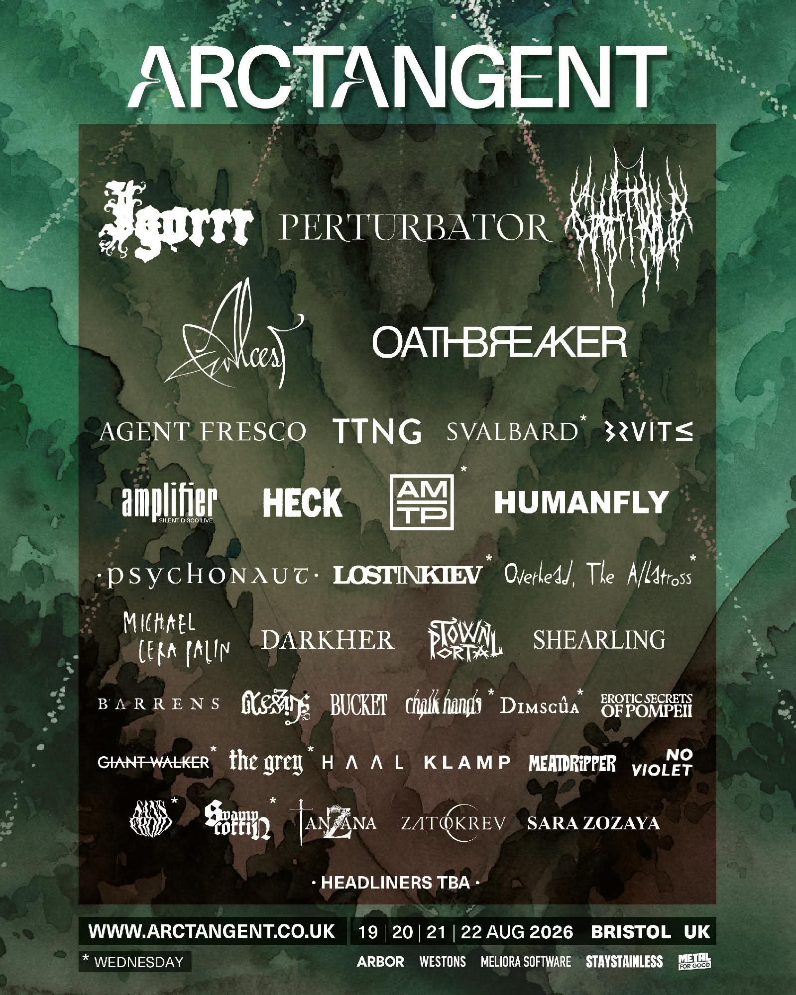 The initial lineup has officially been revealed for next year’s ArcTanGent Festival. The event will take place at Fernhill Farm in Bristol, UK on August 19-22 and it will feature: Igorrr, Perturbator, Chat Pile, Alcest, Oathbreaker, Agent Fresco, TTNG, Svalbard, Bruit, Amplifier (“Silent Disco” set), Heck, Alpha Male Tea Party, Humanfly, Psychonaut, Lost In Kiev, Overhead, The Albatross, Michael Cera Palin, Darkher, Town Portal, Shearling, Barrens, Blessings, Bucket, Chalk Hands, Dimscûa, Erotic Secrets Of Pompeii, Giant Walker, The Grey, HAAL, Klamp, Meatdripper, No Violet, Sans Froid, Swamp Coffin, Tanzana, Zatokrev, and Sara Zozaya.