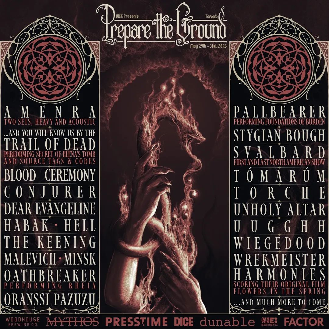 More bands have been added to next year’s Prepare The Ground festival in Toronto, ON. The event will be held across Trinity St. Paul’s Church, Lee’s Palace, the Cave, and Transac on May 29-31 and it will now feature: Amenra (heavy and acoustic sets), …And You Will Know Us By the Trail of Dead (performing “Secret of Elena’s Tomb” and “Source Tags & Codes”), Blood Ceremony, Conjurer, Dear Evangeline, Habak, HELL, The Keening, Malevich, Minsk, Oathbreaker (performing “Rhea“), Oranssi Pazuzu, Pallbearer (performing “Foundations of Burden”), Stygian Bough, Svalbard (first and last North American Show), Tómarúm, Torche, UUGGHH, Unholy Altar, Wiedgedood, Wrekmeister Harmonies (scoring their original film “Flowers in the Spring”), and more to be announced.