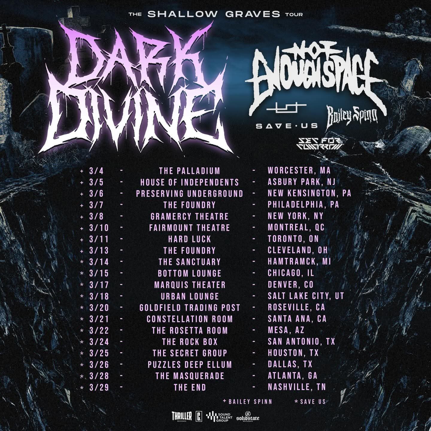 Dark Divine have announced a headlining North American tour with Not Enough Space and Set For Tomorrow. Bailey Spinn and Save Us are also set to join them on select dates.
