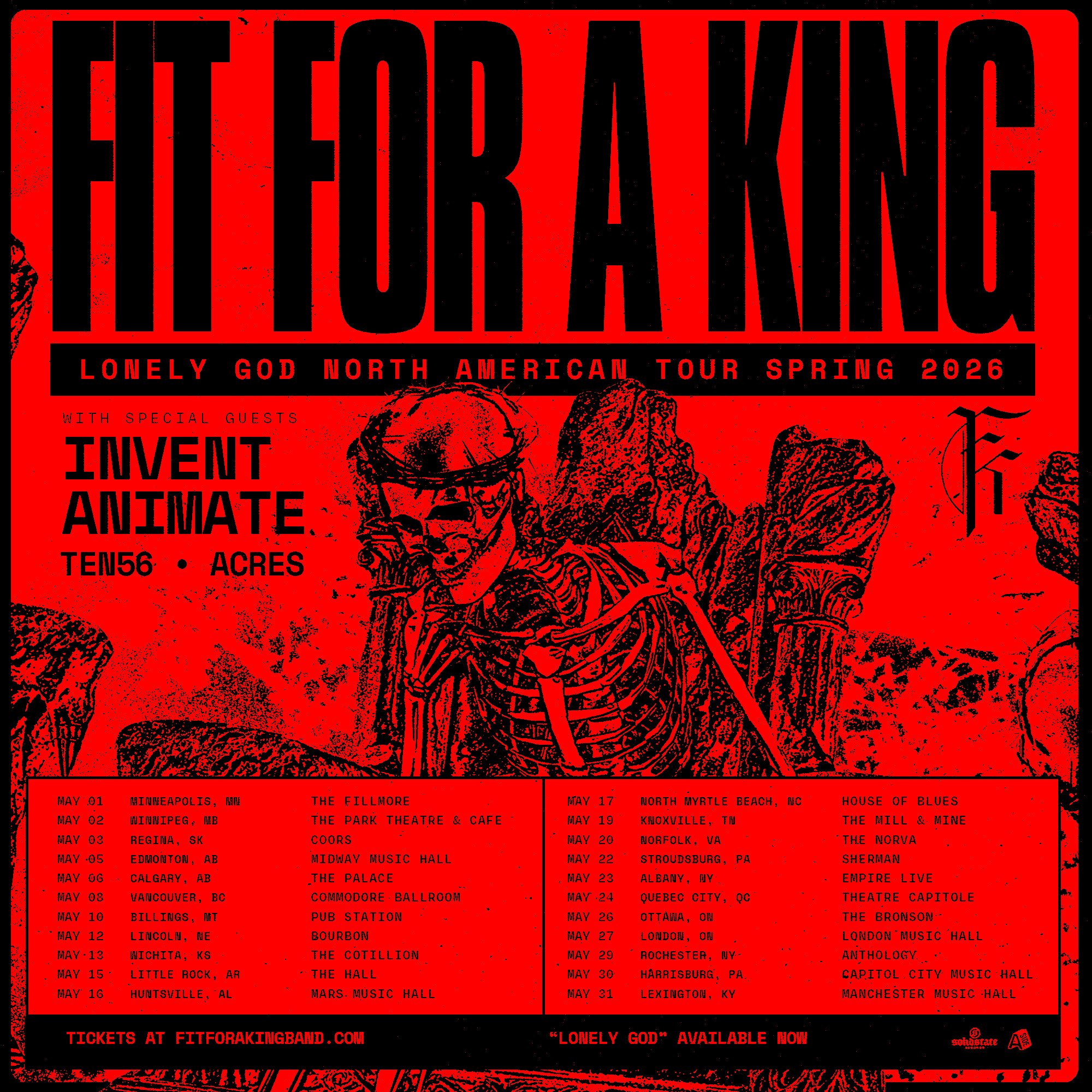 Fit For A King have announced a headlining North American tour. Invent Animate, ten56., and Acres will serve as support.