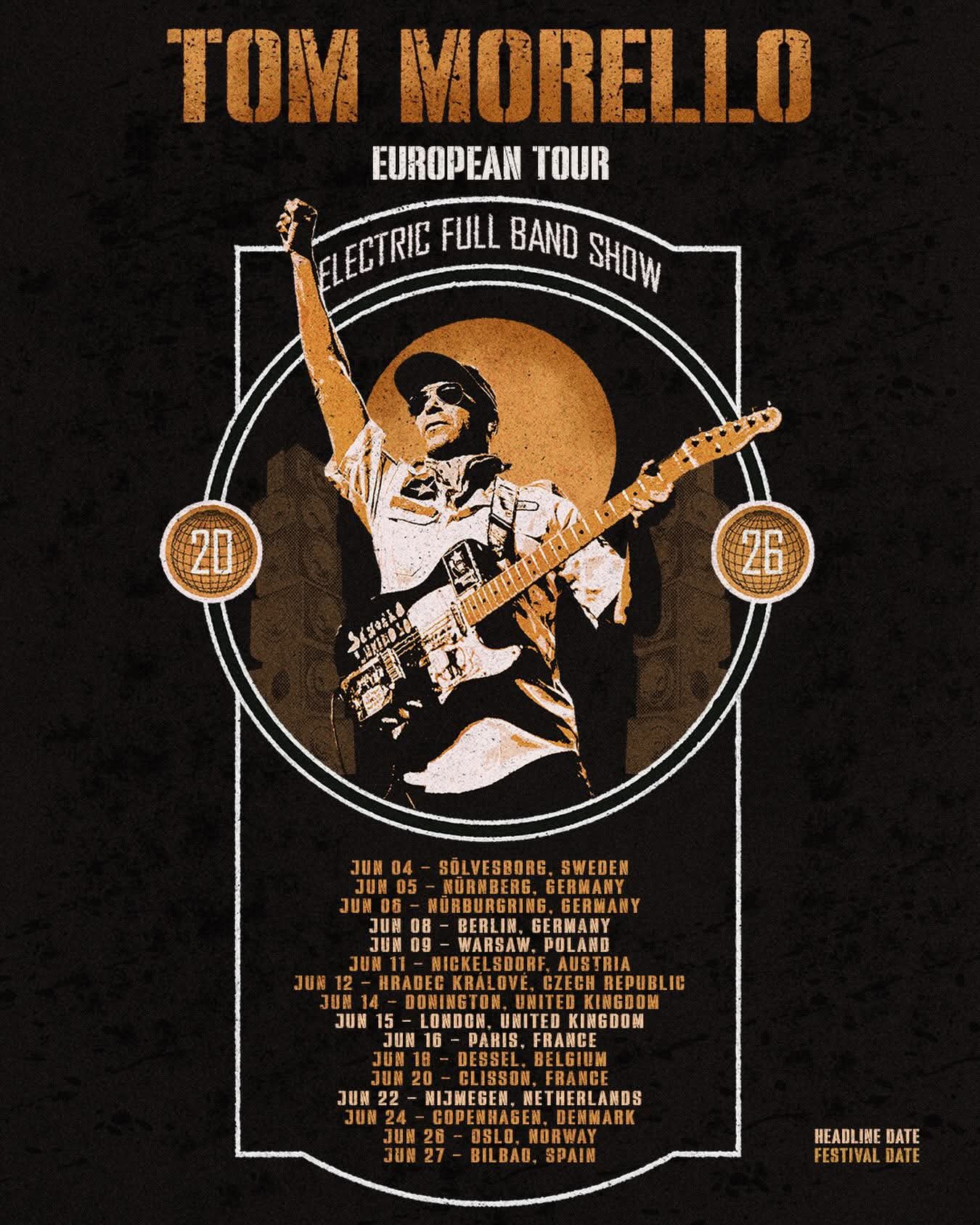 Tom Morello (Rage Against The Machine) has announced a European/UK tour. Here’s the dates:
