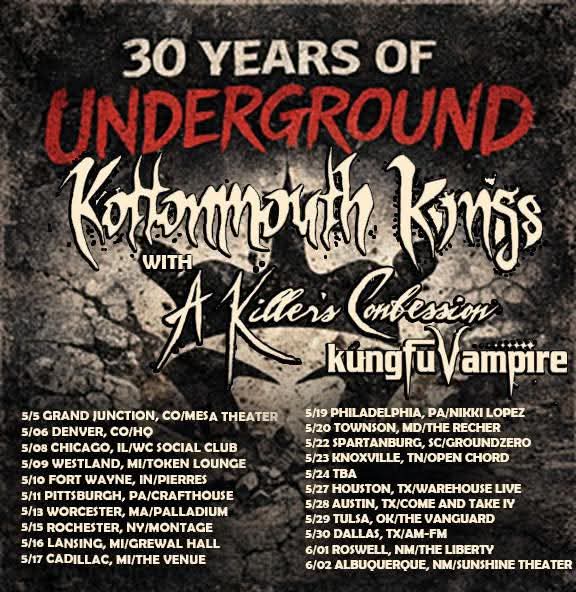 A Killer’s Confession (ex-Mushroomhead) are among the openers on Kottonmouth Kings‘ 30th anniversary tour. Kung Fu Vampire will take part as well.