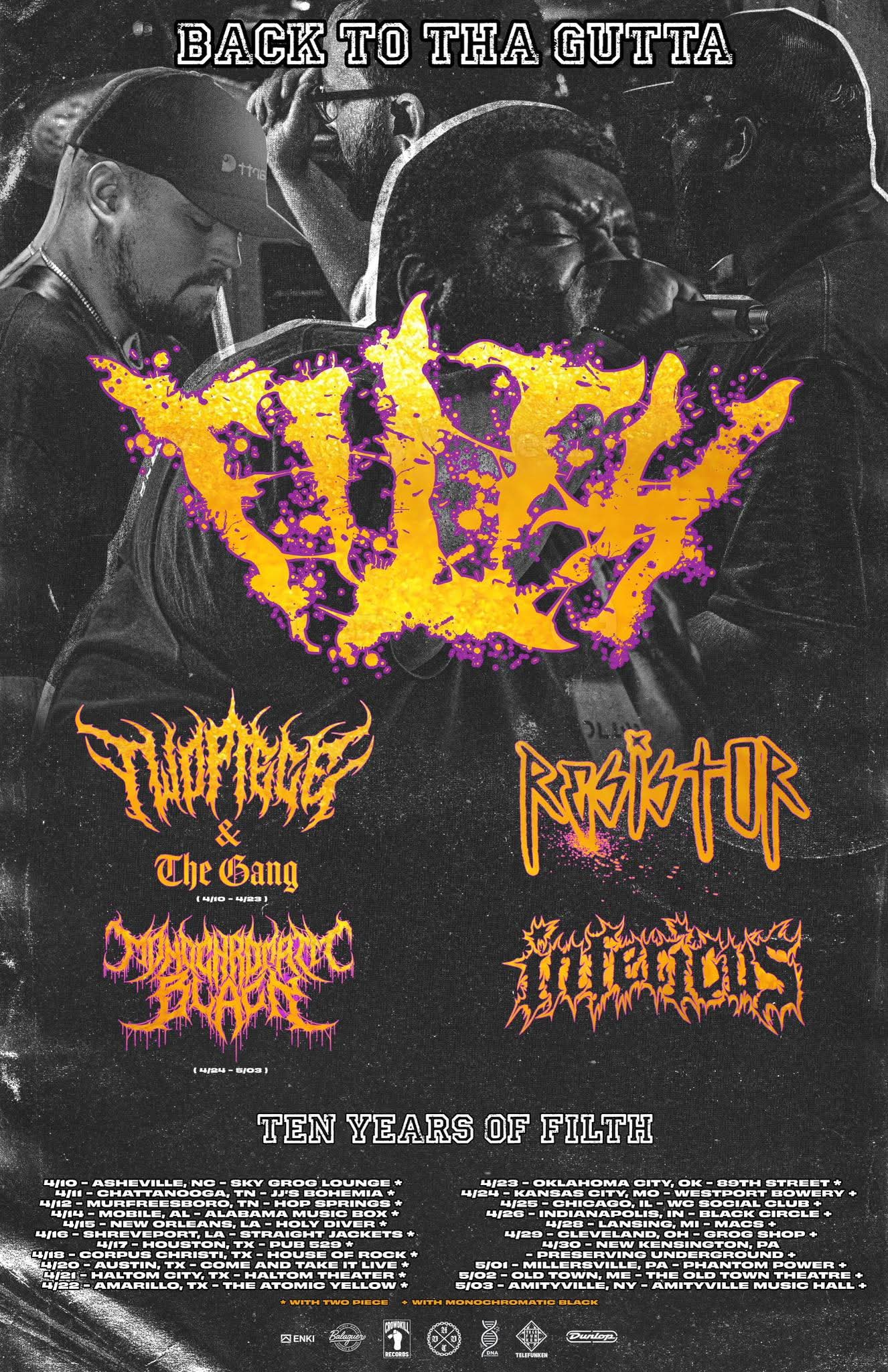 Filth will be celebrating their 10th anniversary on a spring tour with Resistor and Inferious. Two-Piece & The Gang and Monochromatic Black will also join the band on select dates.