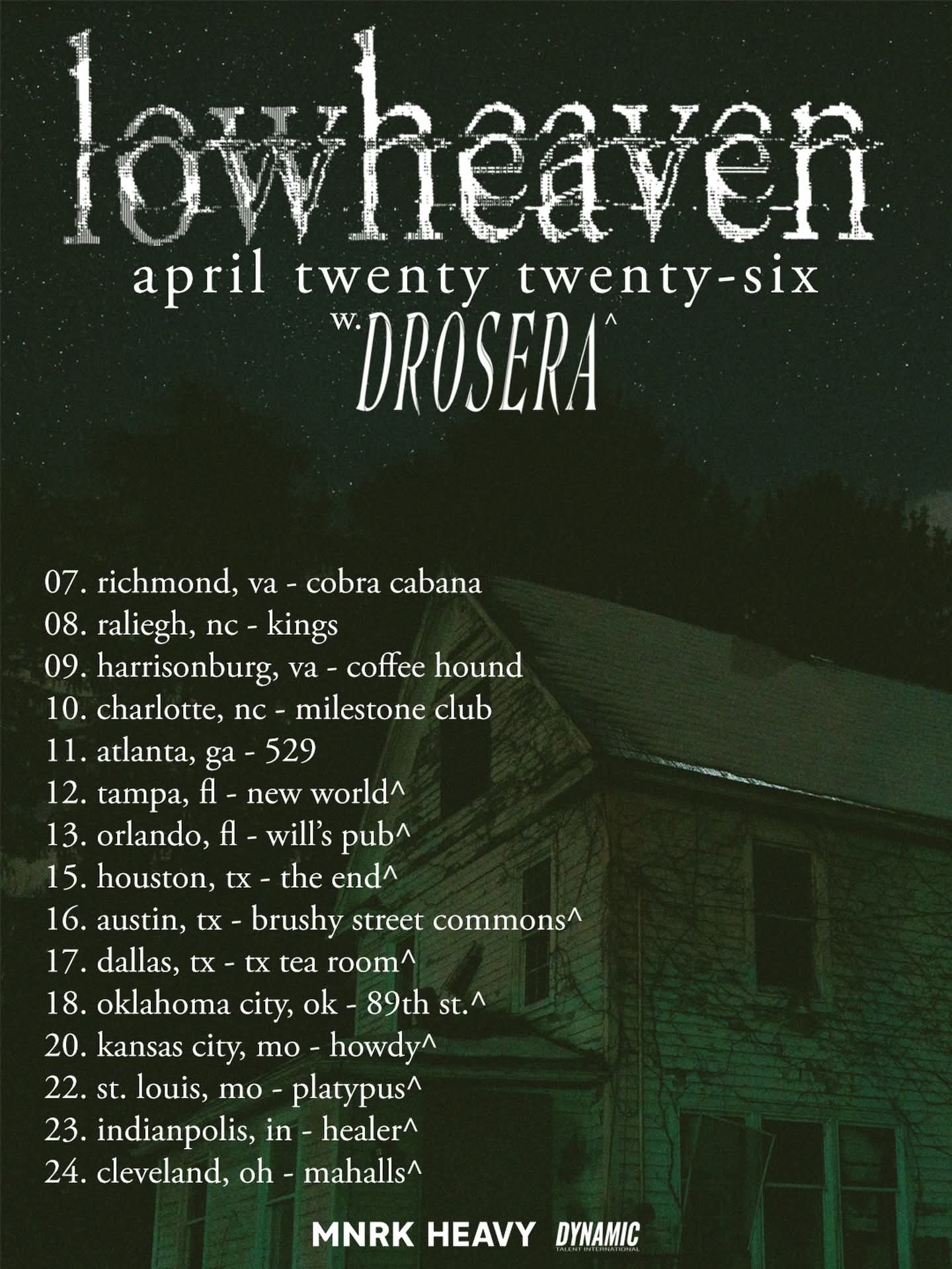 Lowheaven have announced an April U.S. tour. Drosera will open on select dates.