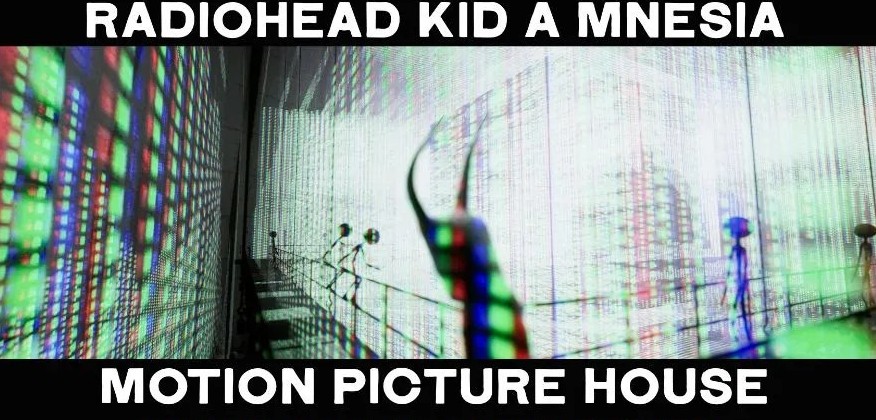“Fans will recall the ‘KID A MNESIA’ exhibition directed by Sean Evans and featured on Epic Games Store and PS5, aptly described by The Verge as ‘unsettling and beautiful.’ ‘KID A MNESIA’ was originally intended as an experience in a physical space and while the pandemic necessitated Epic Games’ Unreal Engine transporting the project to a virtual world, Motion Picture House is the actualization of the original idea: an opportunity for audiences to be completely enveloped in the world of ‘Kid A’ and ‘Amnesiac.’ In the flesh, on a large scale and featuring a custom built 6-point surround system for which the music was specifically remixed, ‘KID A MNESIA’ features a narrative designed by its creators—in Thom Yorke’s words—’in which a Monster is trapped in a derelict museum of the lost & forgotten.’ Gorgeous, visceral and slightly anxiety-inducing, ‘KID A MNESIA’ is an epic wander through the masterpieces that inspired it—a time and place that 25 years ago, Radiohead cautioned us to enter at our own peril.”