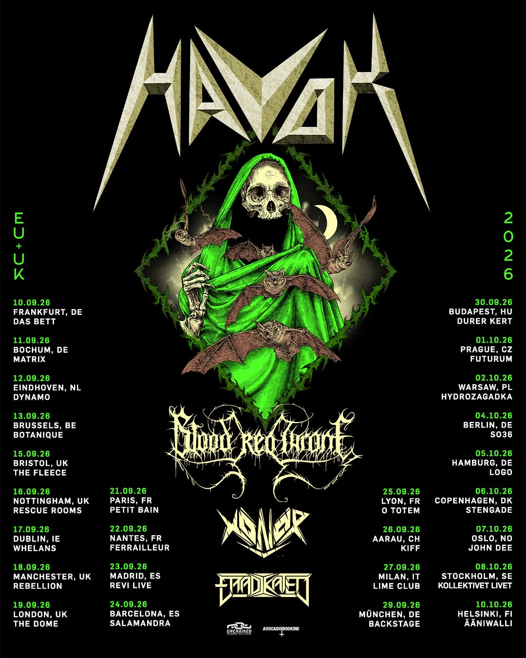 Havok have announced a fall European/UK tour. Blood Red Throne, Xonor, and Eradikated will open.