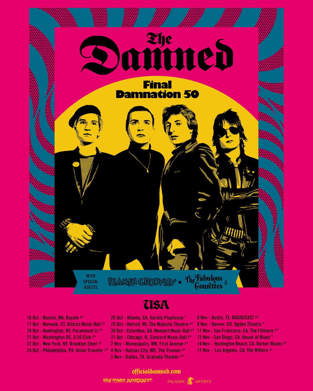The Damned will be hitting the road on the “Final Damnation” U.S. tour this fall. The Flamin’ Groovies and The Courettes will open.