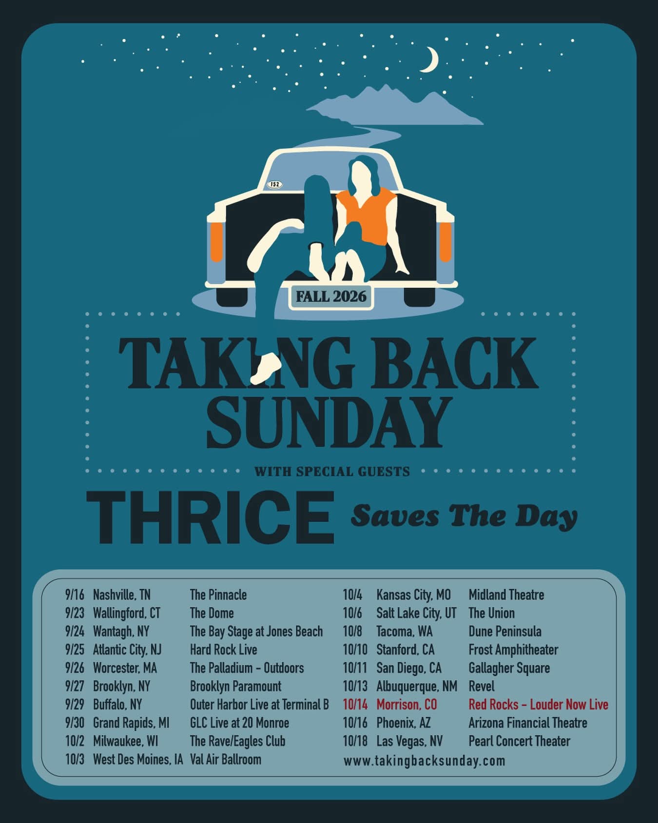 Taking Back Sunday have announced a headlining U.S. tour. Thrice and Saves The Day will open.